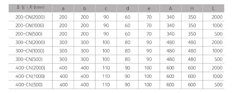 곡선에 설치하는 경우 아래의 표를 참고하여 설치하여 주십시오.
